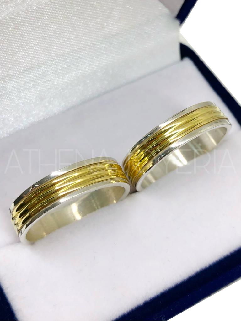 PAR ALIANZAS PLATA Y ORO LAMINADO A045