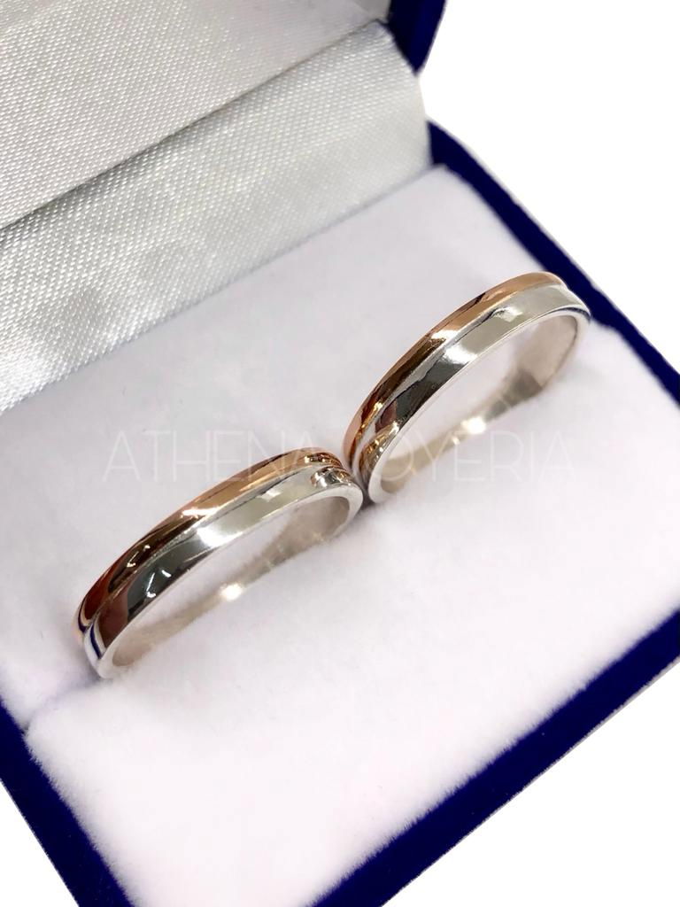 PAR ALIANZAS PLATA Y ORO LAMINADO A055