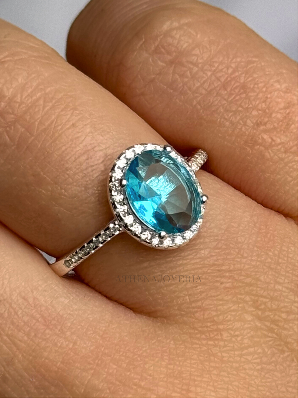 Cintillo Plata 925 Importado Color Celeste Oval