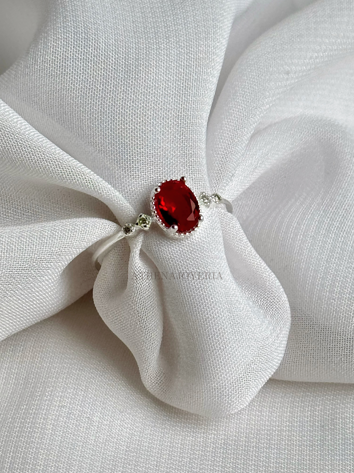 Cintillo Plata 925 Importado Color Rojo Oval