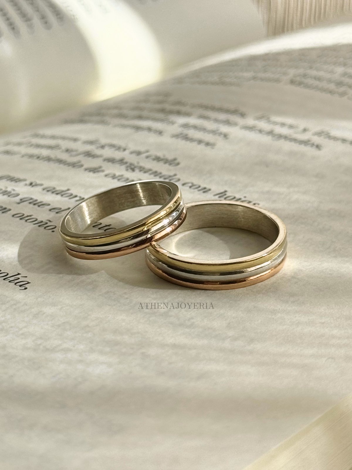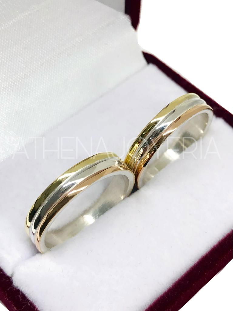 Ideales para quienes celebran el amor y buscan una joya especial. Combina oro rosa, dorado y centro en plata. El cuerpo interno, también de plata, le brinda a esta alianza una excelente rigidez.